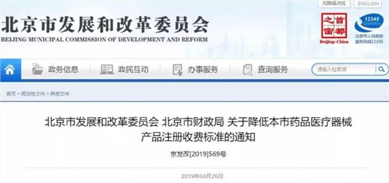 4月26日,北京市發(fā)改委官網(wǎng)發(fā)布《北京市發(fā)展和改革委員會北京市財政局 關(guān)于降低本市藥品醫(yī)療器械產(chǎn)品注冊收費標(biāo)準(zhǔn)》的通知,稱自2019年5月1日起,北京市藥品和醫(yī)療器械產(chǎn)品注冊收費標(biāo)準(zhǔn)降為零。